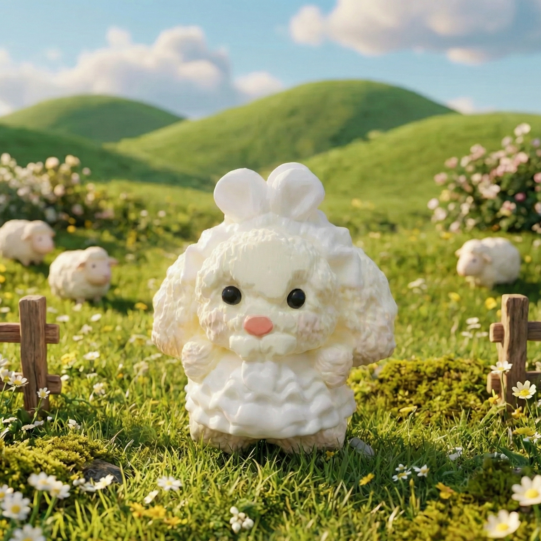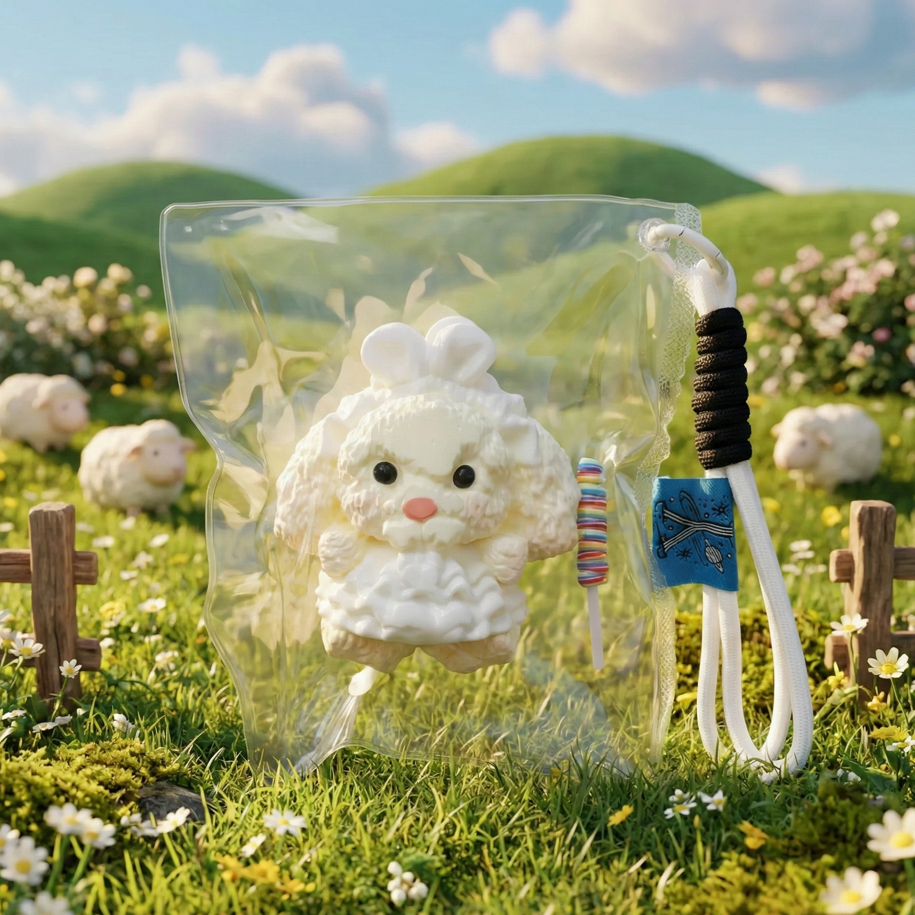 The Rainbow Bunny Squishy is all about gentle joy and playful charm. With fluffy curls, a frilly white dress, and a rainbow stick of happiness, this bunny brings comfort when you need a hug and fun when you need a smile.
