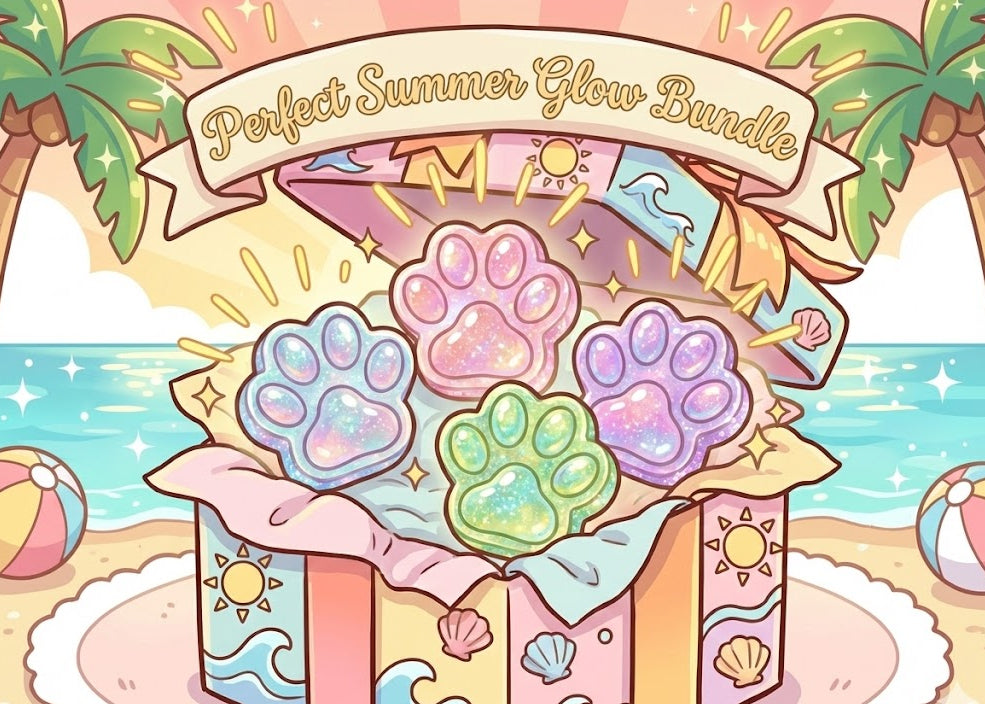 Celebrate sunshine with this sparkly four-pack of paw squishies—each radiating iridescent joy and paired with ready-to-use Yuniverso charm straps.