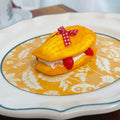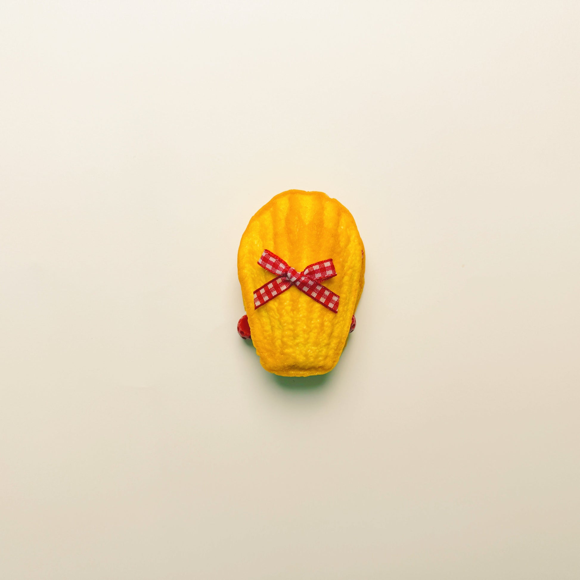 This isn’t just a treat for the eyes—it’s a moment of softness, sweetness, and storybook magic. Our Berry Belle Madeleine captures the golden sponge of a traditional French madeleine, layered with whipped cream and juicy strawberry slices, topped with a darling gingham bow.