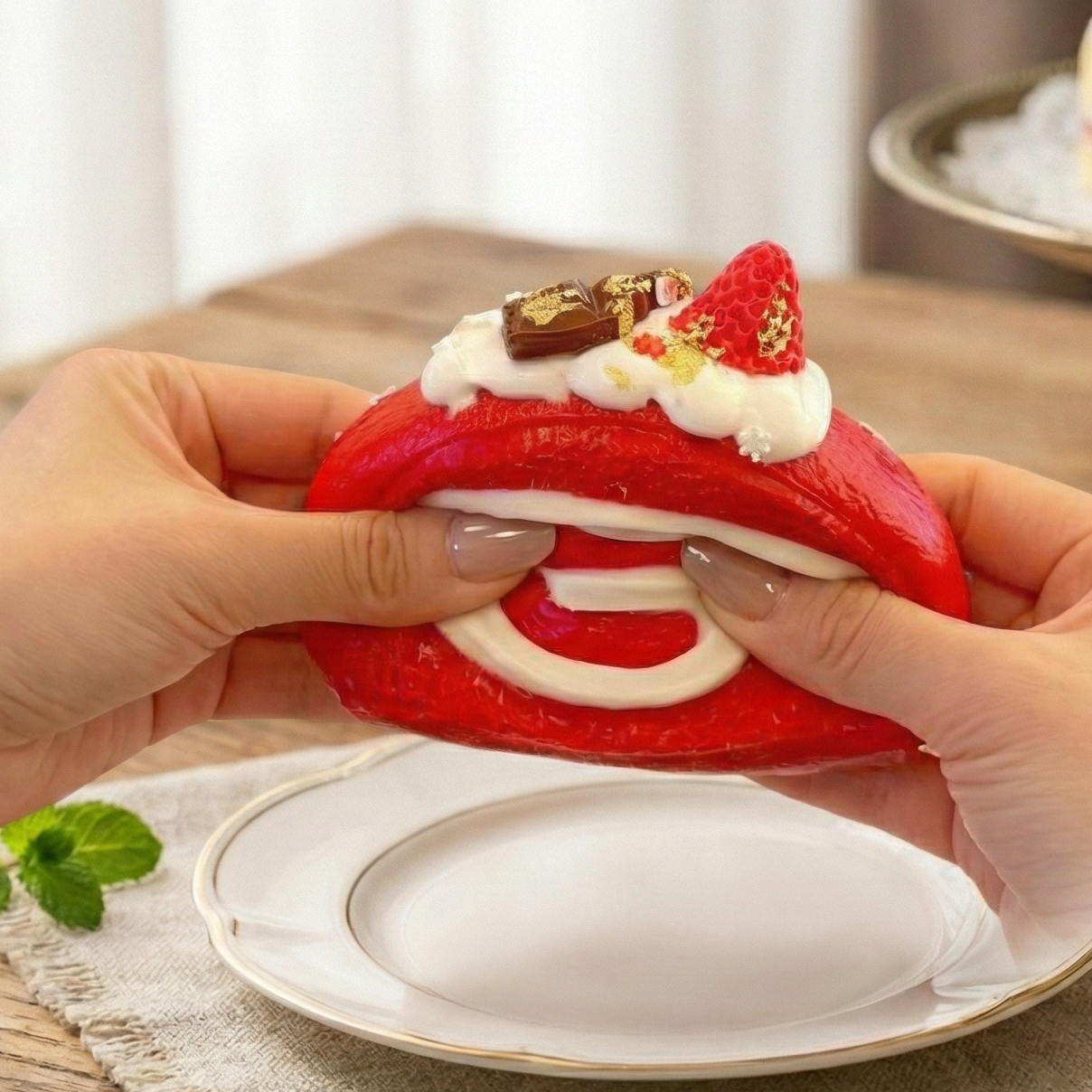 Snowy Cream Roll Squishy wraps festival cheer in dessert form â a swirled red sponge topped with creamy frosting, golden chocolate, and a pop of berry magic. Itâs sweet, soft, and full of cozy winter vibes â like a festive treat you can actually squish.