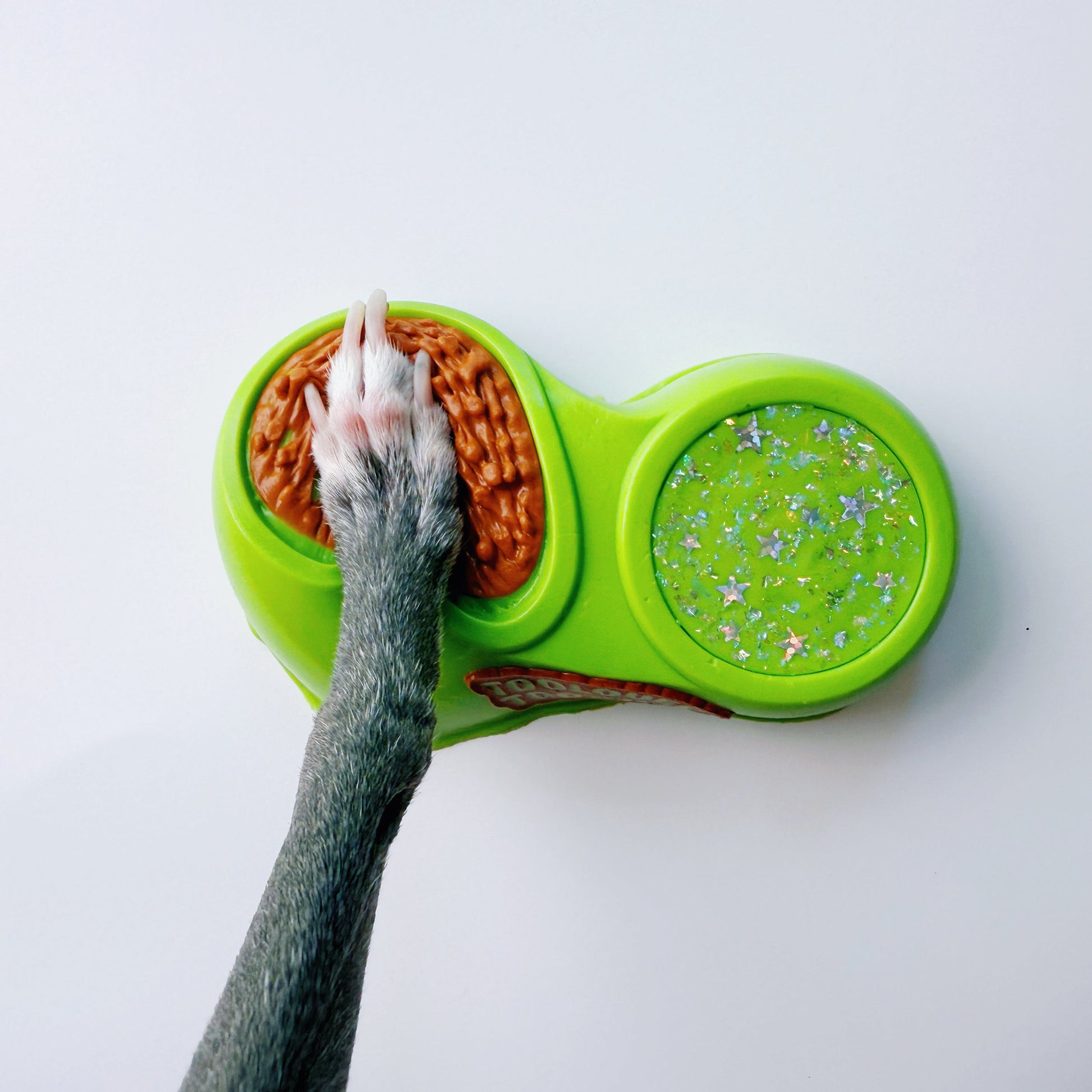 The Woof Bowl Squishy serves up a playful twist — a bright green puppy bowl packed with bouncy kibble beads and glittery slime sparkle. Double the texture, double the fun!
