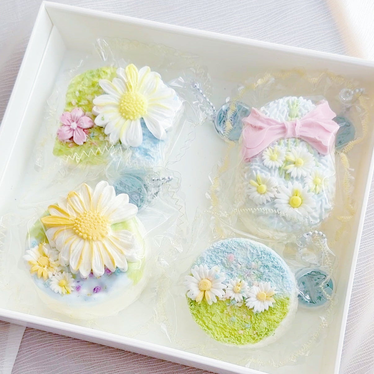 🌿 Mini Wildflower Meadow (Squishy Weight*: +/- 120g)– Compact charm with a colorful base and a dainty daisy trio