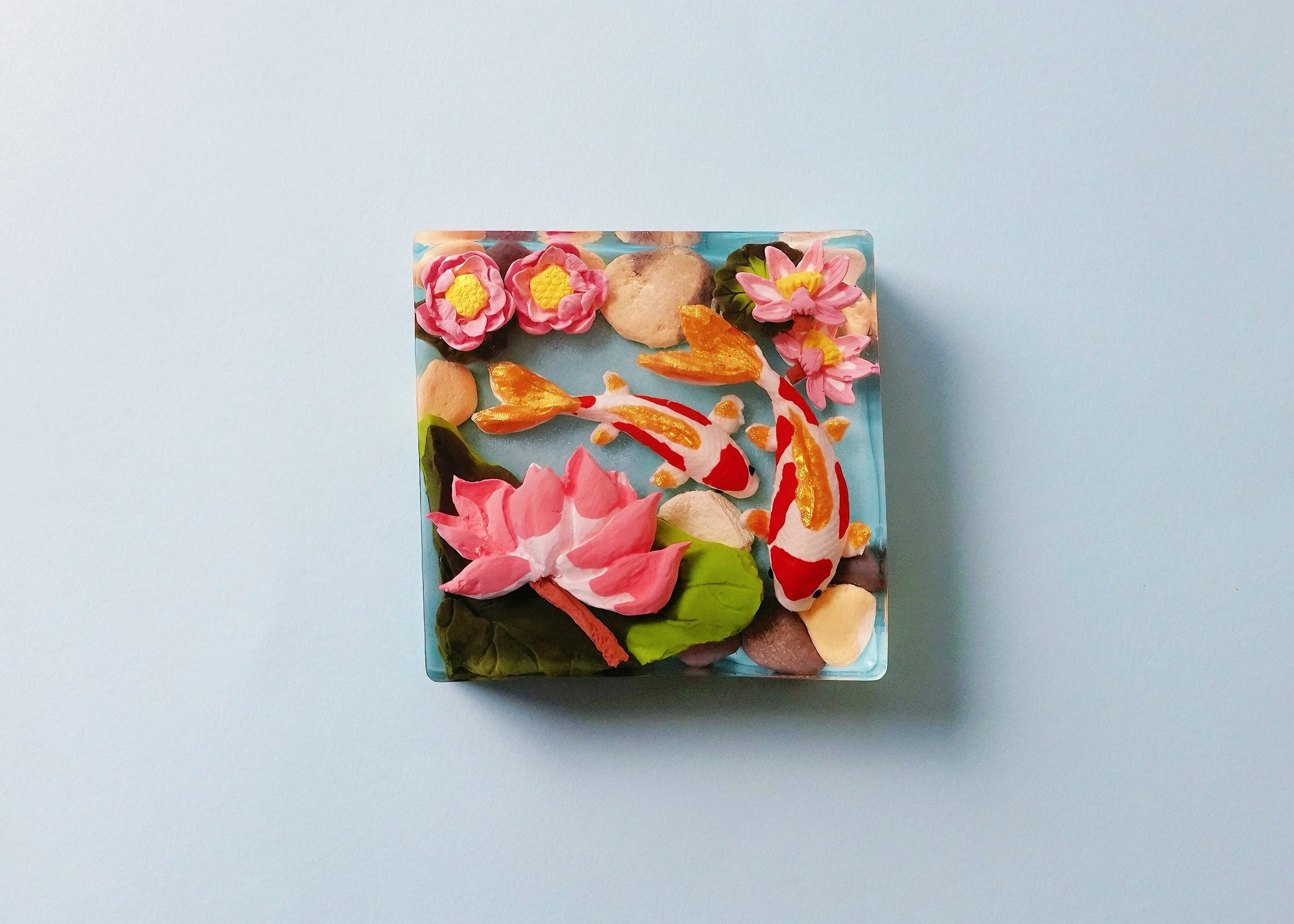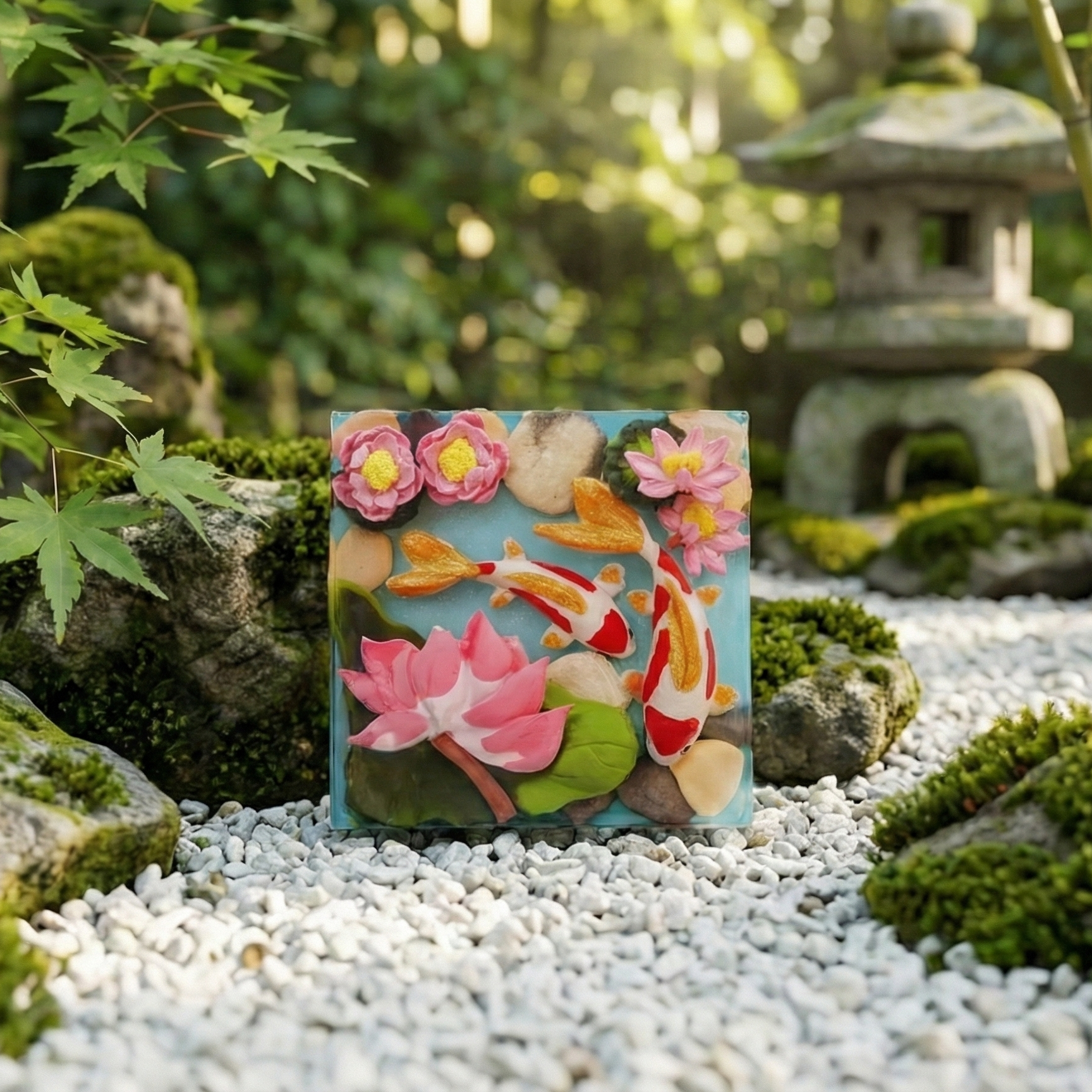 Inspired by tranquil garden ponds, this layered squishy features golden koi, blooming lotus flowers, and soft, flowing textures that bring a touch of zen to your everyday space. Use this mini Zen Garden Squishy as a calming fidget when you need a quiet moment—or frame it as a unique piece of decor for your home or desk.