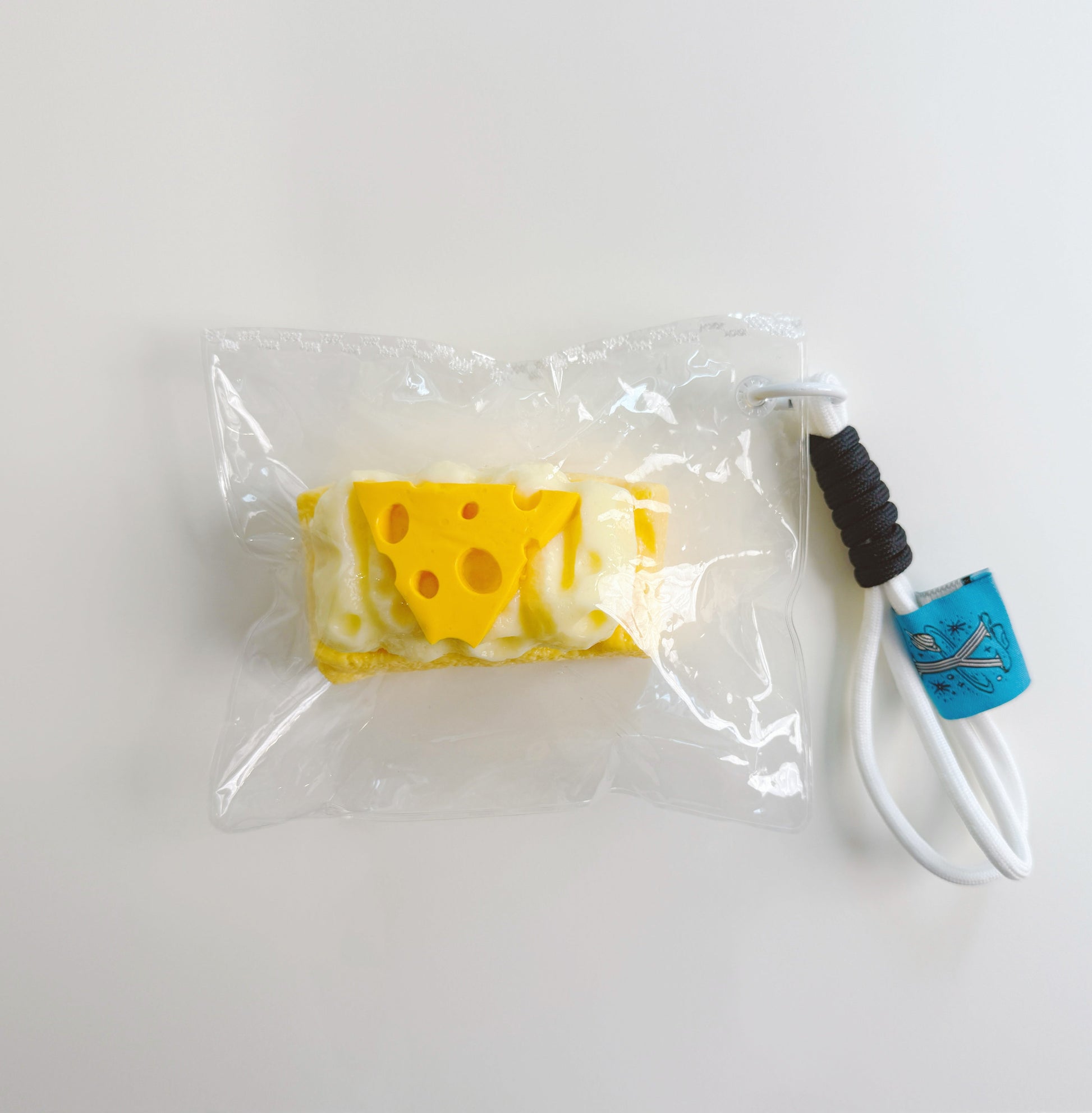 Melt your stress away with this irresistibly soft Emmental Cheese Toast Squishy. Inspired by the iconic Swiss cheese, this golden toast features fluffy whipped “topping” and a chunky wedge of Emmental-style cheese—holes and all!