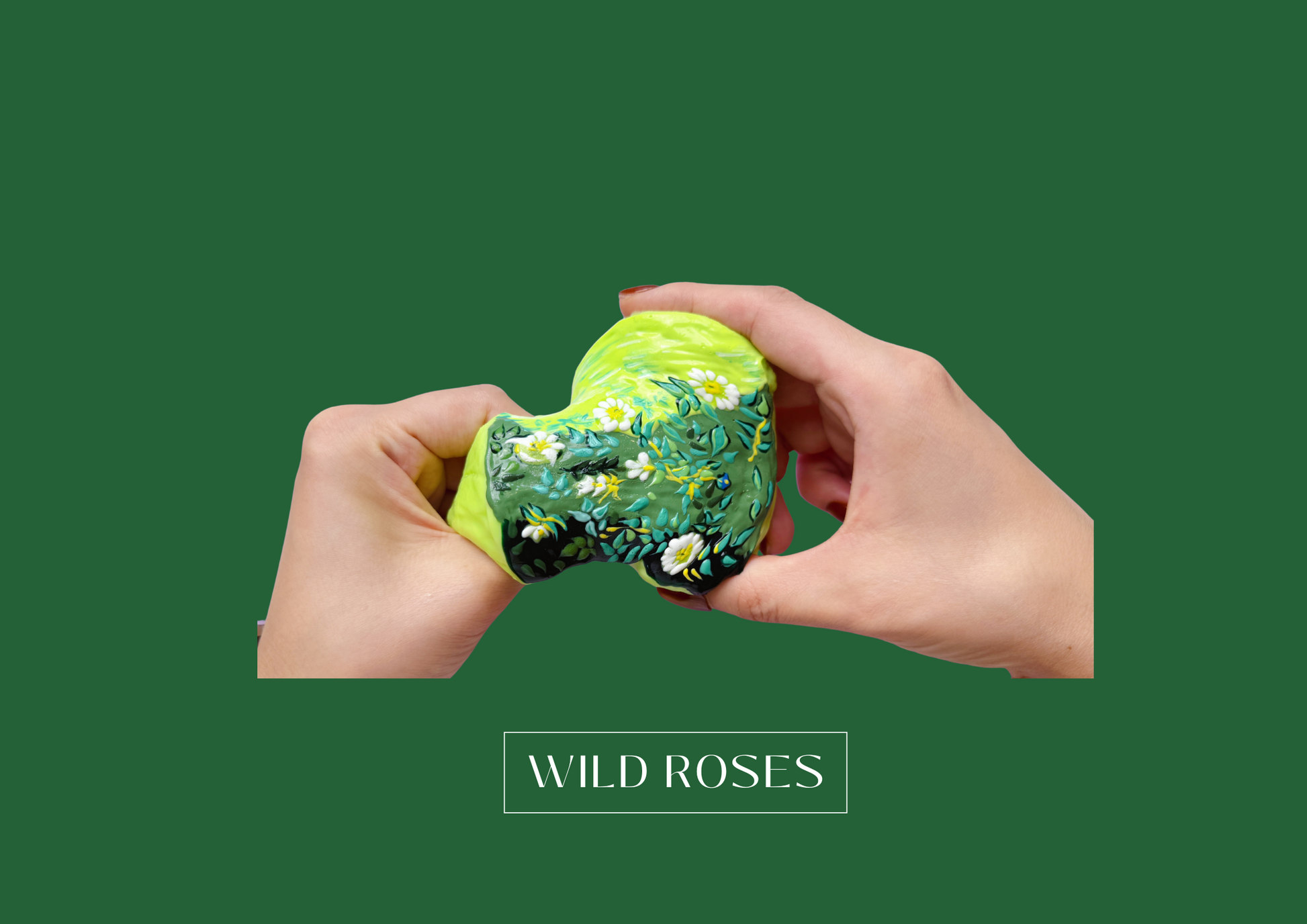 Van Gogh's Wild Roses symbolize natural beauty, resilience, and a quiet sense of hope amidst adversity. This squishy captures the essence of this profound work, allowing you to experience the texture and the serene emotion of Van Gogh’s brushstrokes in a unique and sensory way.