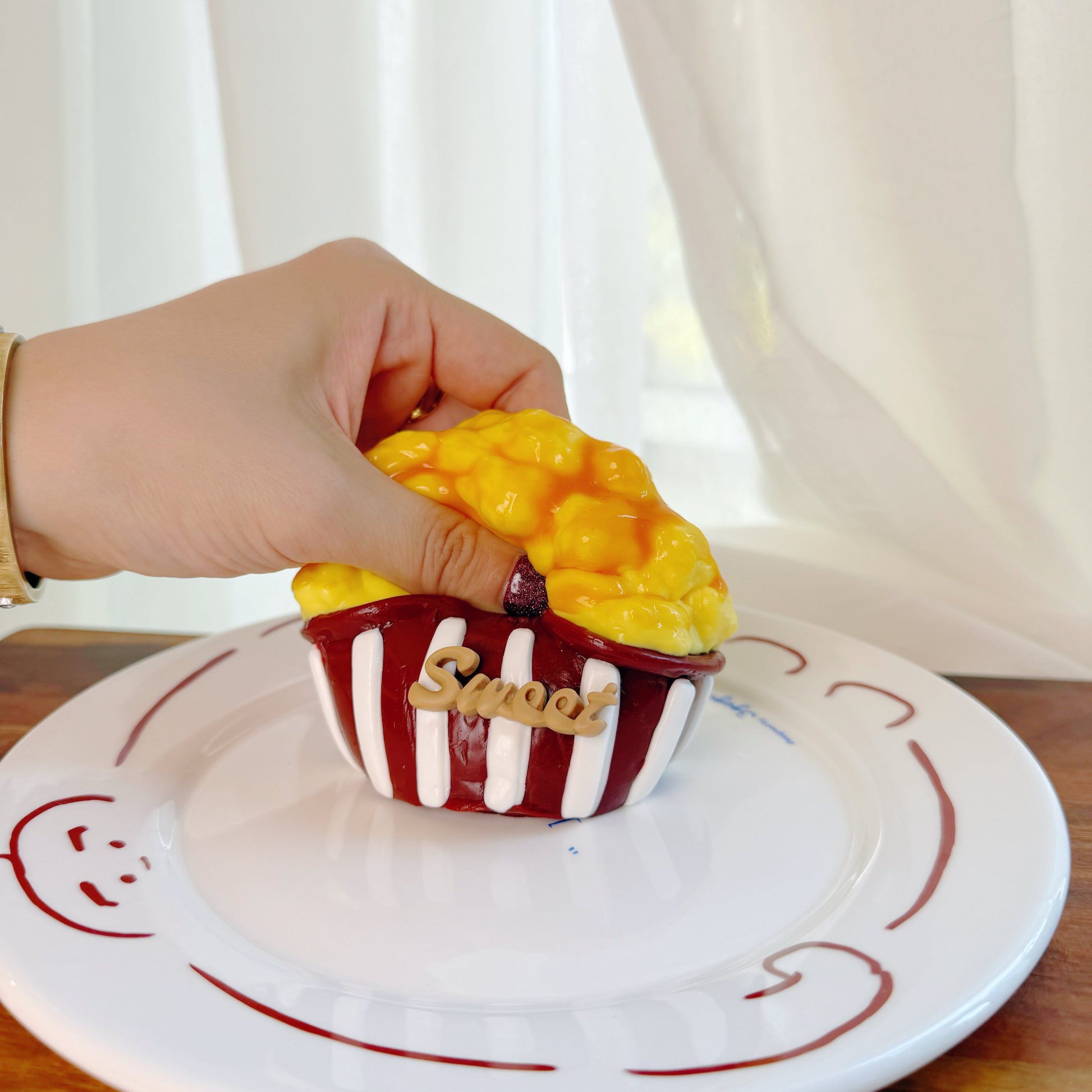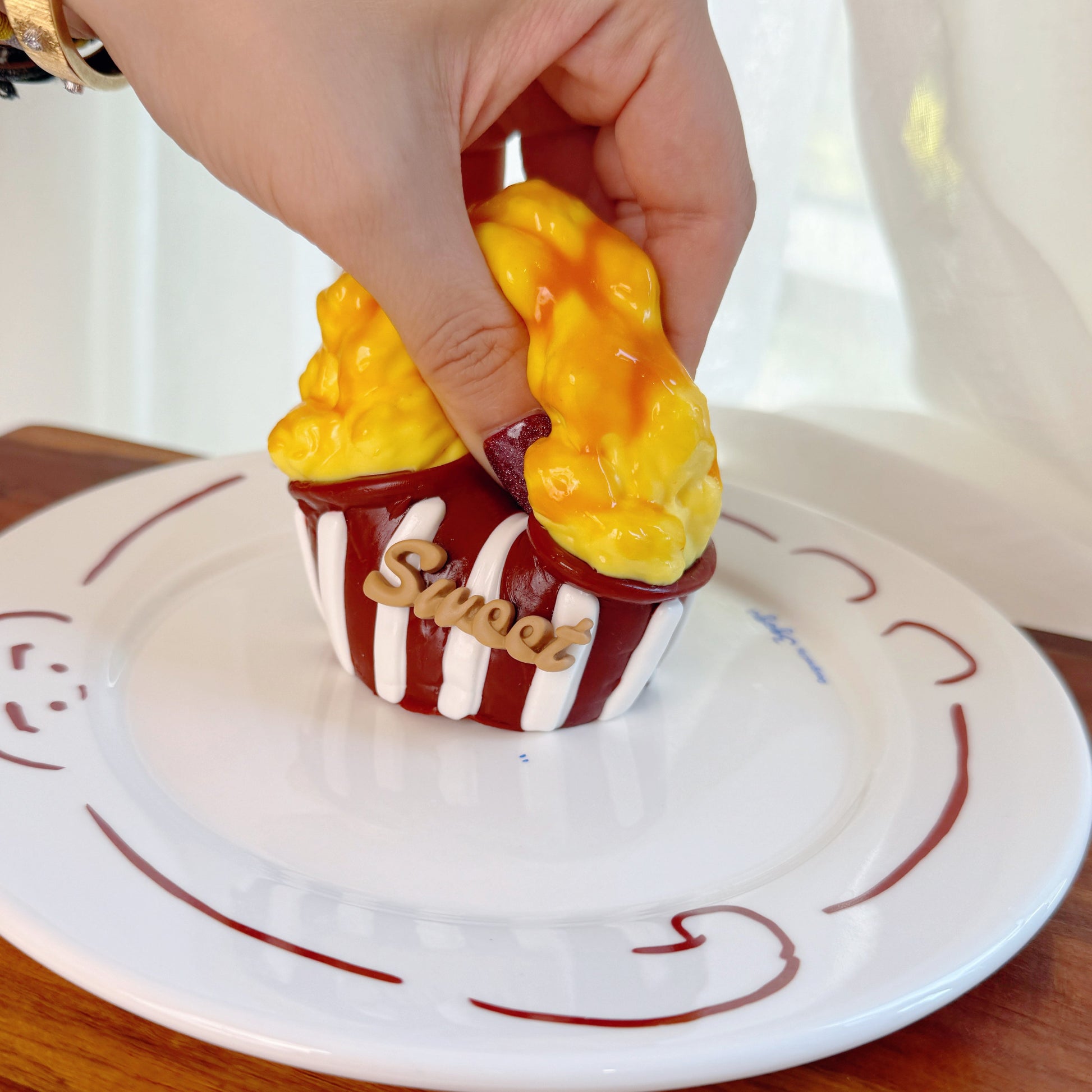 The Popcorn Cup Squishy serves up snack-time joy without the calories. Fluffy golden peaks drizzled with caramel sit in a bold striped cup marked Sweet — a soft, squeezable treat that brings instant fun and stress relief.